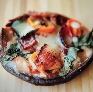 Fire grilled colossal mushrooms caps, seasoned mascarpone, Italian sausage crumble, tangy marinara, all nestled under a mountain of mozzarella and bacon to top it! Served on fauxghetti with marinara. Craving pizza? This is the cure!